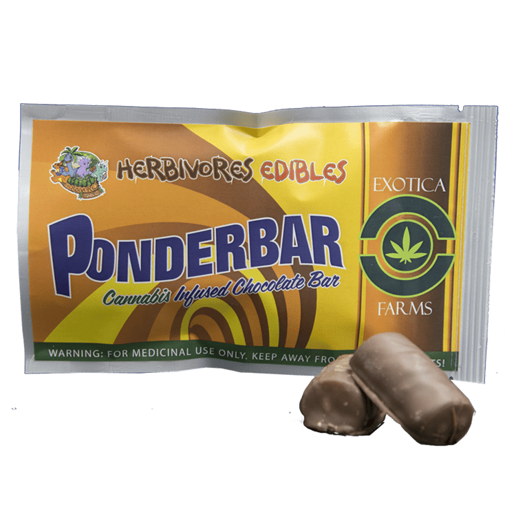 Cannabis infused chocolate bar with caramel and crushed roasted peanuts.
