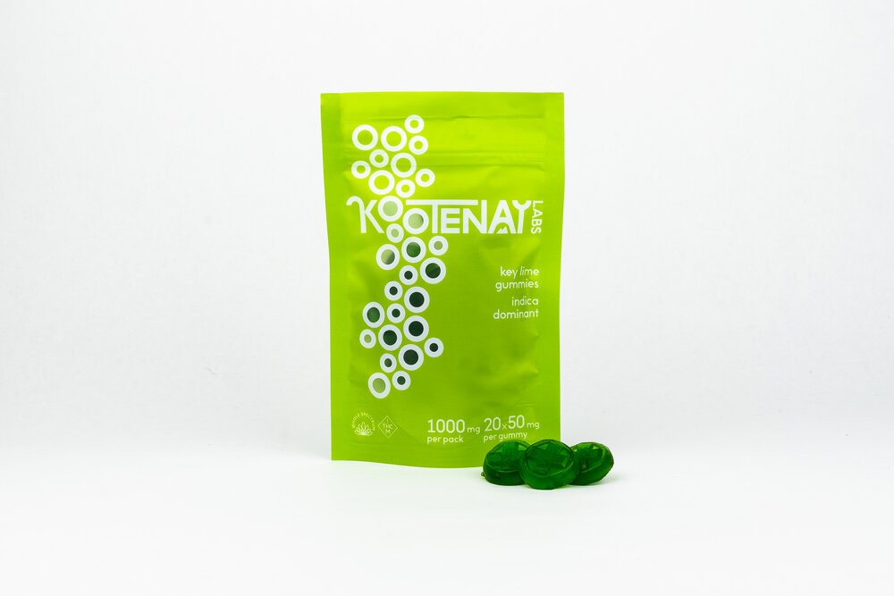 Kootenay Labs – Indica Gummies – Key Lime – 1000mg THC | BC Weed Edible Canada