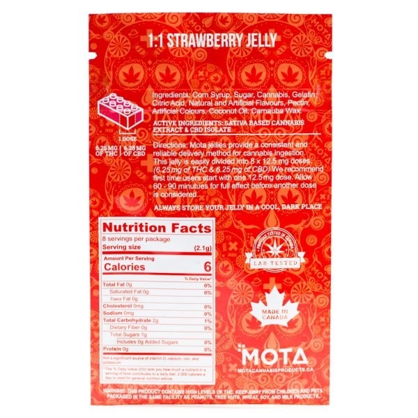 Mota – 1:1 Strawberry Jelly – Sativa 50mg THC | BC Weed Edible Canada