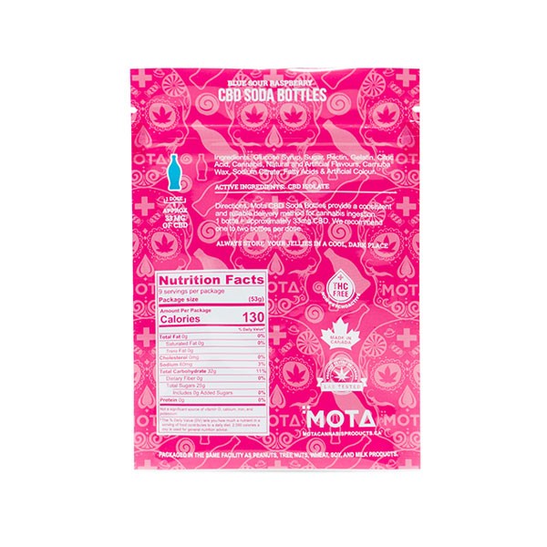 Mota – CBD Soda Bottles – Blue Sour Raspberry – 300mg CBD | BC Weed Edible Canada